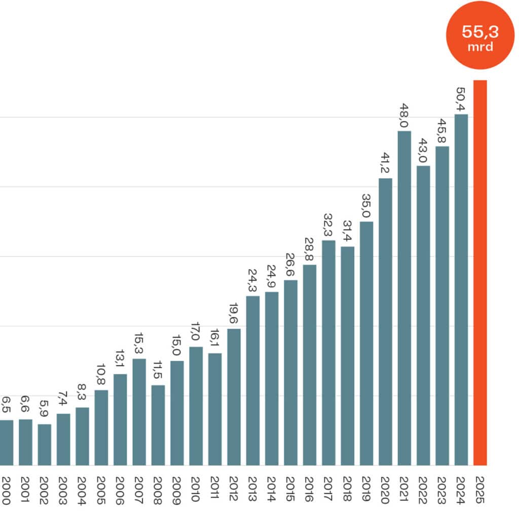 – I et år med handelskrig, kaotisk amerikansk tollregime og en rekke andre uromomenter må vi kunne si oss fornøyd med at Ferds verdijusterte egenkapital økte fra 50,4 milliarder kroner til 55,3 milliarder etter utbyttebetaling. Totalt oppnådde Ferd en avkastning på 5,6 milliarder kroner, det vil si 11,1 prosent, eller 13,0 prosent fraregnet valutaeffekter som følge av styrket krone og svakere dollar, kommenterer Tom Erik Myrland, Ferds investeringsdirektør og medlem av konsernledelsen.
