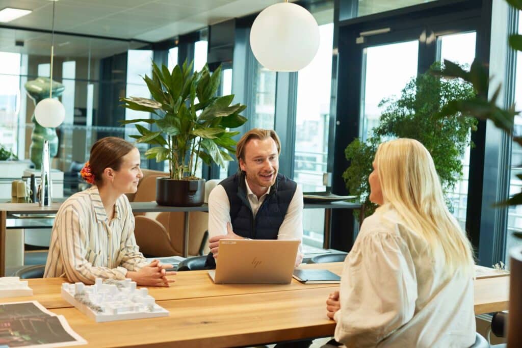INKLUDERT: Erling Nordanger ble godt tatt imot av teamet i Ferd Capital. Her sammen med Kamilla Lillefjære og Anniken Fougner. Foto: Stig Jarnes