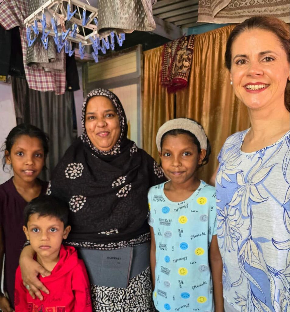 I INDIA: Marlene Hormes sammen med Shagufta, som er kunde i Svasti Microfinance i Mumbai i India, og hennes familie. Foto: Abler Nordic/Alessia Molteberg